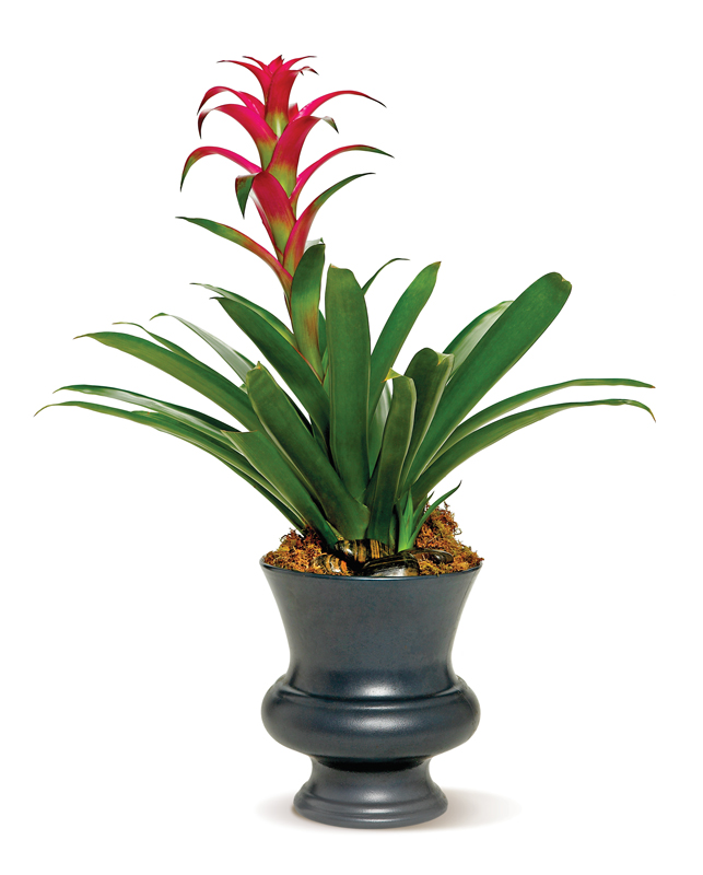Originally displayed in royal botanical gardens and greenhouses- bromeliads are now widely enjoyed. And this variety- with its rosy-topped flower stalk and pretty pot- will add a bit of exotic beauty to any home or office.