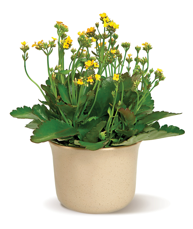 With its tiny yellow flowers and pretty- frilly leaves- a blooming kalanchoe plant in a pot makes a lovely and thoughtful gift. Or buy several for yourself- and place them on a windowsill ? for a truly cheerful presentation!