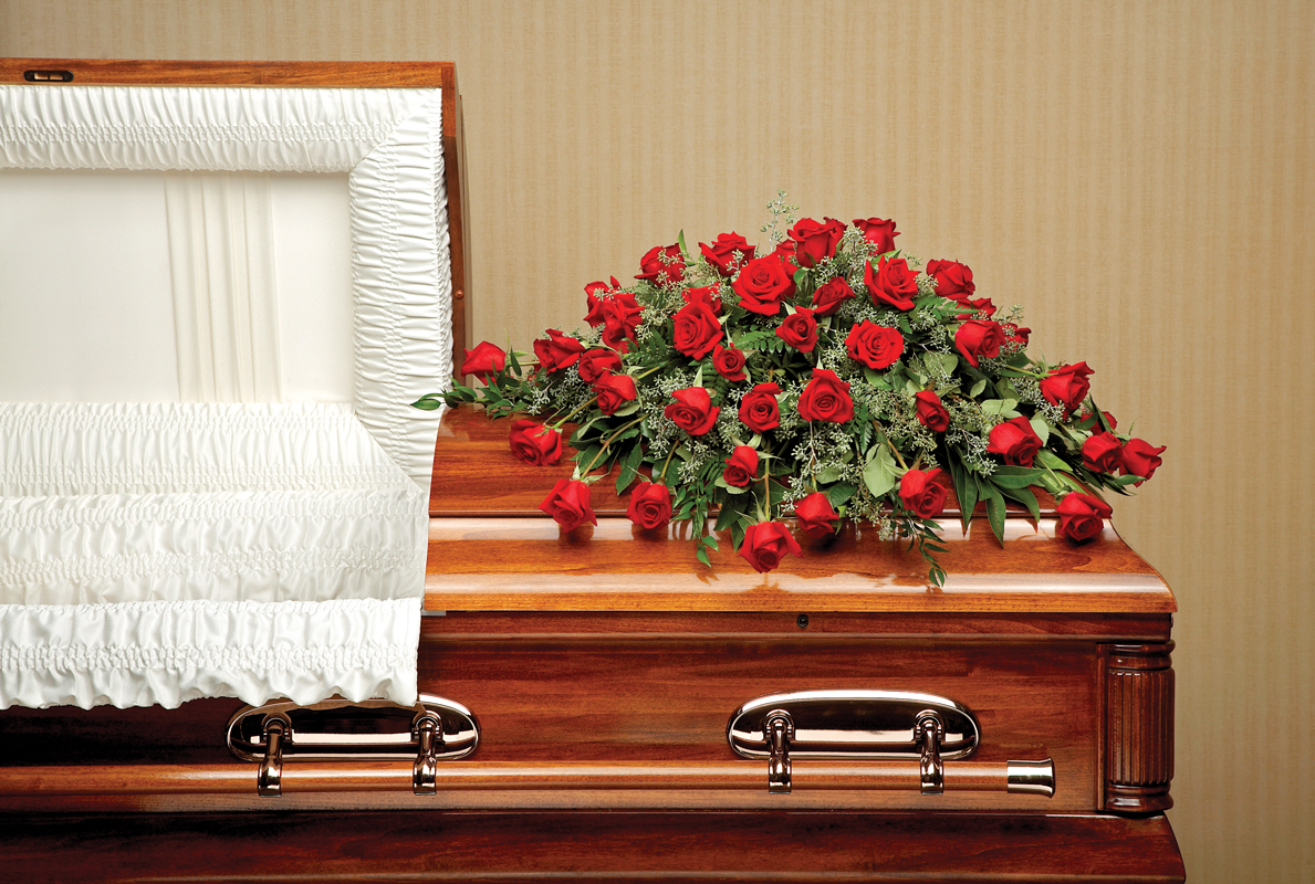 An abundance of red roses will express your love and devotion with beauty. This classic casket spray of roses mixed with greenery will be a fragrant reminder on a solemn day.